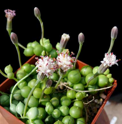 Like other succulent plants, they need a well draining soil. Senecio rowleyanus is often displayed in hanging pots, trailing over rocks or draped along the top walls to show off the long strands of bead shaped leaves. We recommend half cactus/succulent soil . String of pearls bloom tiny white flowers . I do not use exact measurements .